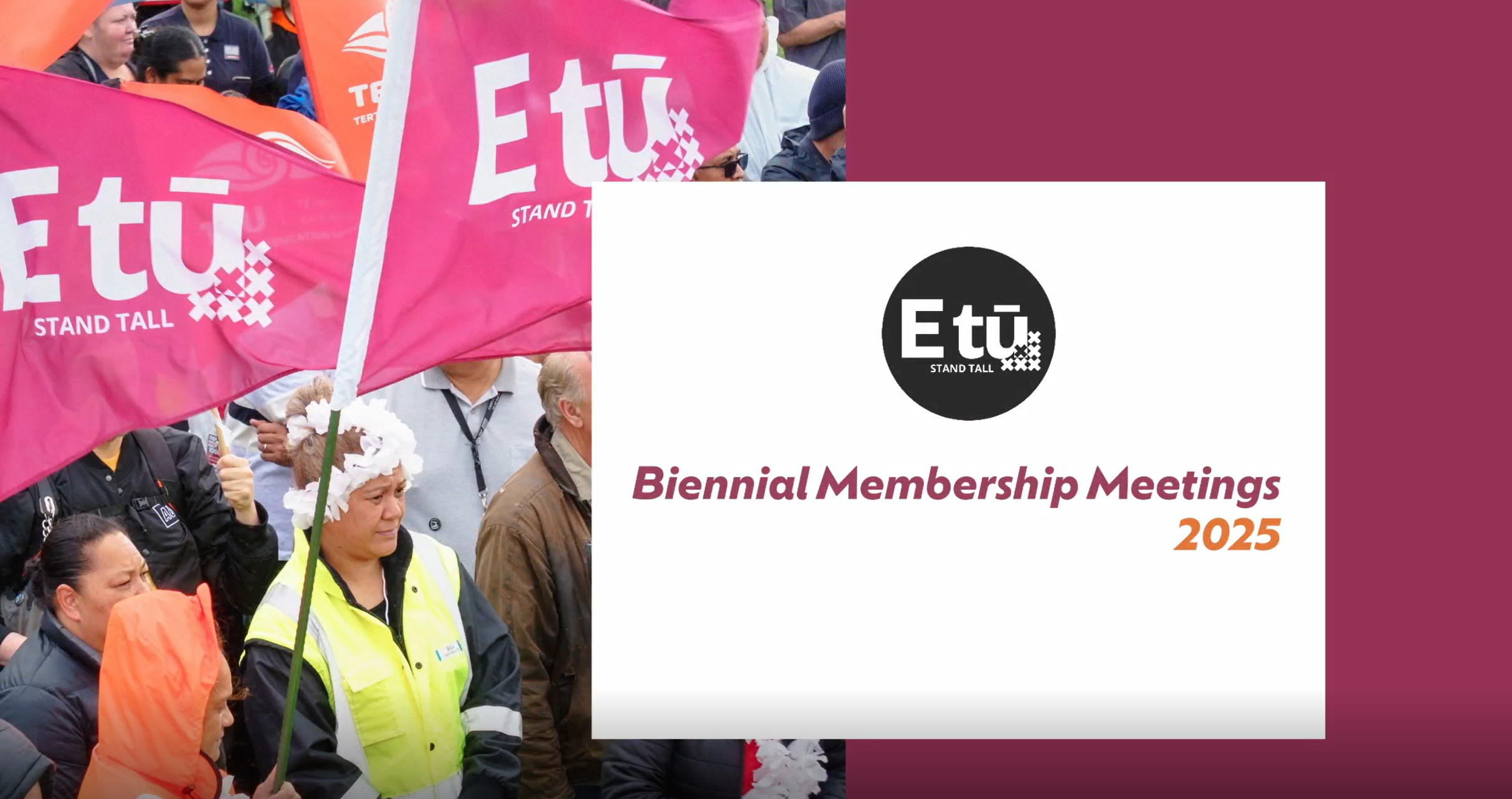 E tū members met across the country in September for our Biennial Membership Meetings. Check out the video below of National Secretary Rachel Mackintosh’s presentation at the a Biennial Membership Meeting in Wellington.