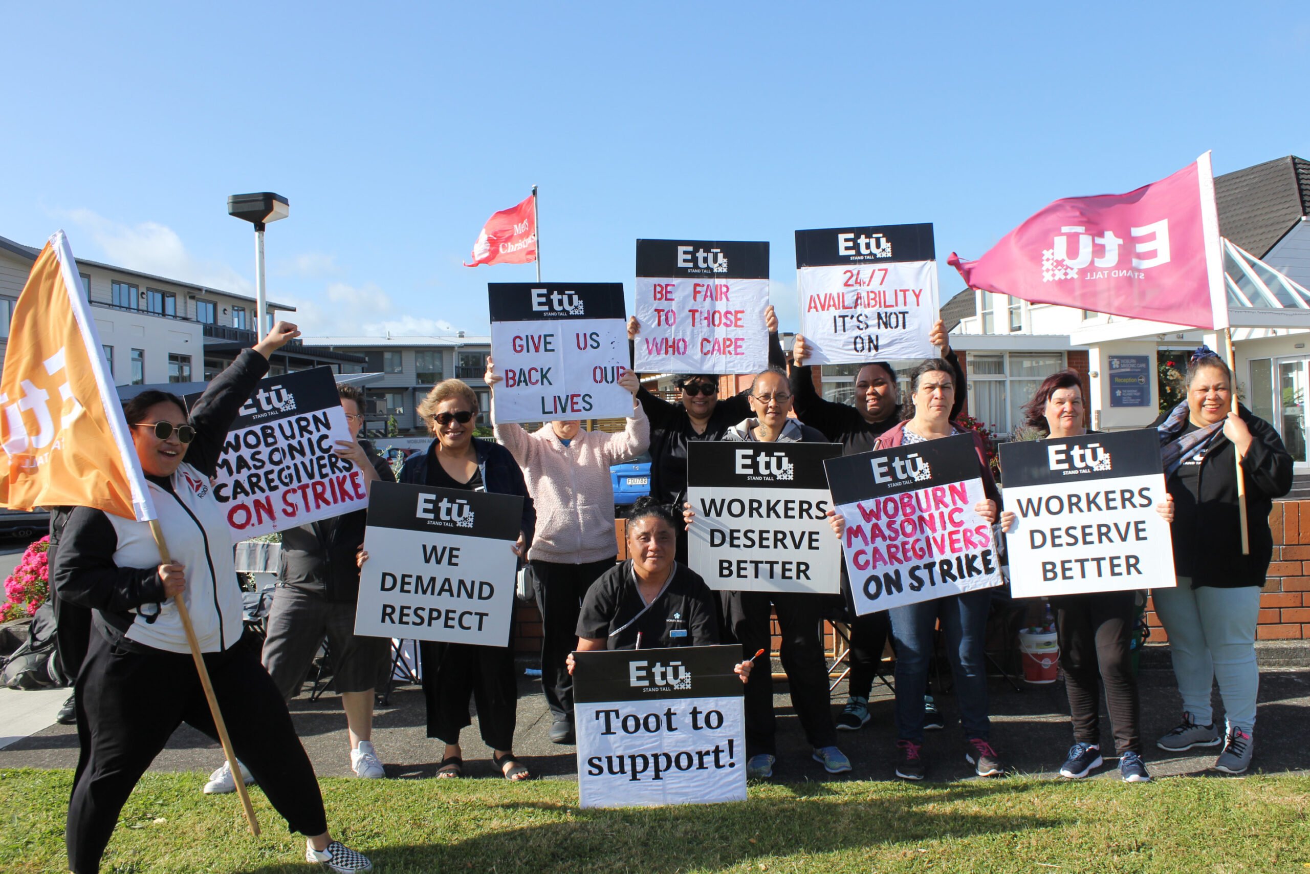 E tū caregivers strike tomorrow for a third time as they continue their fight to end their precarious hours and the 24/7 availability in case of roster changes which is required by their employer, Masonic Care Limited.